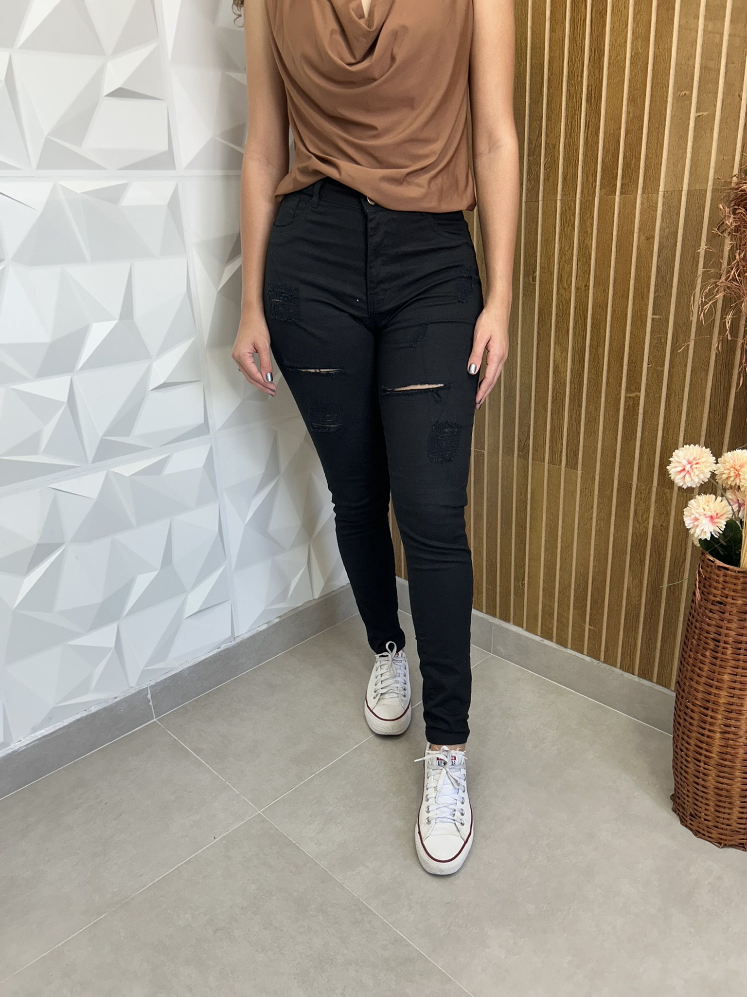 Calça Jeans Feminina Preta Skinny Destroyed – Conforto e Estilo Casual